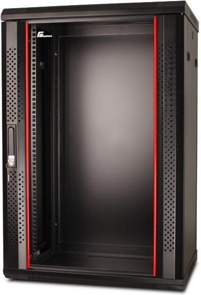 SZAFA RACK GETFORT 19 CALI 18U 600X450 WISZĄCANajważniejsze cechySzafa wisząca 18UDrzwi przednie przeszklone z zamkiemGłębokość 450mmZdejmowane panele boczneDemontowana tylna ściankaUziemieniePrzepusty kablowe w suficie i podłodzeMiejsce na 2 wentylatoryOtwory wentylacyjne w ściankach bocznych oraz drzwiachŁatwy i intuicyjny montażPrzeznaczenieSzafy rack dedykowane są do montażu urządzeń z obudową w standardzie 19″. Umożliwiają one zabezpieczenie urządzeń przed niepowołanym dostępem, oraz przypadkowym wyłączeniem. Dodatkowo dzięki dobrej wentylacji przedłużają ich żywotność.Do szaf można dokupić opcjonalne półki, które umożliwią montaż urządzeń nie przystosowanych do standardu rack 19″.OpisSzafy teleinformatyczne GetFort znajdują bardzo szerokie zastosowanie. Nadają się idealnie do montażu systemu monitoringu CCTV, instalacji okablowania strukturalnego zarówno w firmie jak i w domu. Nadają się również do zabudowy pasywnym i aktywnym sprzętem sieciowym. Wszystkie szafy wykonane są z wysokiej jakości materiałów. Umożliwiają dowolną możliwość aranżacji wnętrza, dzięki dostępności wielu akcesoriów.Szafy Getfort posiadają specjalne otwory wentylacyjne w ściankach oraz drzwiach przednich. Umożliwiają również montaż dedykowanych wentylatorów. Umożliwia to wszystko utrzymanie optymalnych warunków pracy zamontowanych urządzeń, a tym samym wydłużenie ich czasu pracy.Drzwi przednie wyposażone w klamkę z zamkiem i otwory wentylacyjne.Regulowany rozstaw szyn pionowych.W suficie znajduje się przepust kablowy i miejsca na 2 wentylatory 120x120mm.W podłodze znajduje się przepust kablowyDrzwi boczne demontowane są na zatrzaskach z możliwością montażu zamkaŚcianka tylna demontowana za pomocą 4 śrub.Szafa dostarczona jest w 1 kartonie do samodzielnego montażu.Specyfikacja technicznaDrzwi przednie przeszklone z wentylacją, drzwi tylne stalowe demontowane, boczne stalowe demontowane na zatrzaskachPrzepusty kablowe Dwa przepusty kablowe – jeden w suficie, drugi w podłodzeWymiary szafy 600mm x 450mm x 910mm (szerokość/głębokość/wysokość)Wysokość Możliwość montażu urządzeń o sumarycznej wysokości 18UMateriał Drzwi wykonane z blachy stalowej z wklejoną szybą hartowaną i otworami wentylacyjnymiObciążalność 60kgMasa 33kgKolor czarny RAL9004Montaż Szafa do samodzielnego montażu, dostarczana w jednym kartonieKod producenta WGF18-64EH-WGBStopień Ochrony IP20Do zastosowań Wewnętrznych